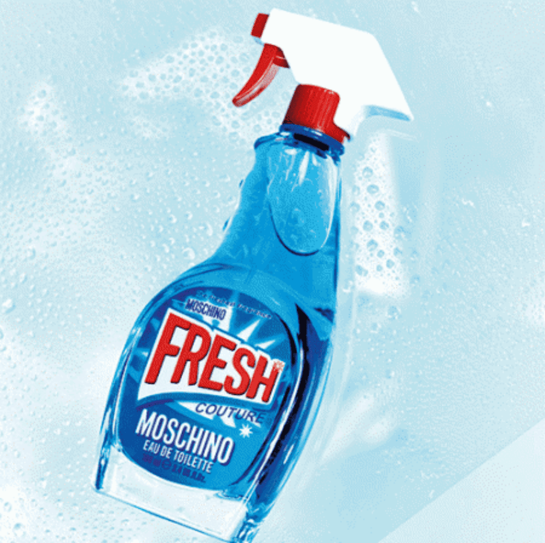 Moschino Fresh Couture brinca com a dualidade: contrapor o produto mais comum do mundo com algo tão precioso quanto um perfume de uma marca de luxo.